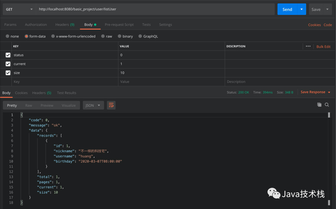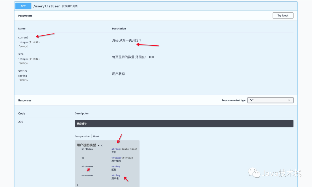 对应的swagger的配置可以查看基础项目内的SwaggerConfiguration.java.点击这里参考详细教程。关注公众号Java技术栈回复boot可以获取Spring Boot系列教程。