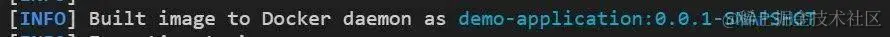 执行 mvn package 时就会自动构建镜像了,执行完成后就会看到提示信息: