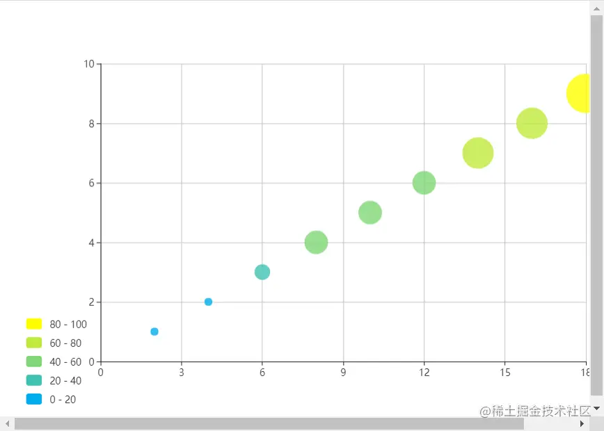 visualMap 视觉映射可以让项目的数据和颜色、大小等属性相关联。