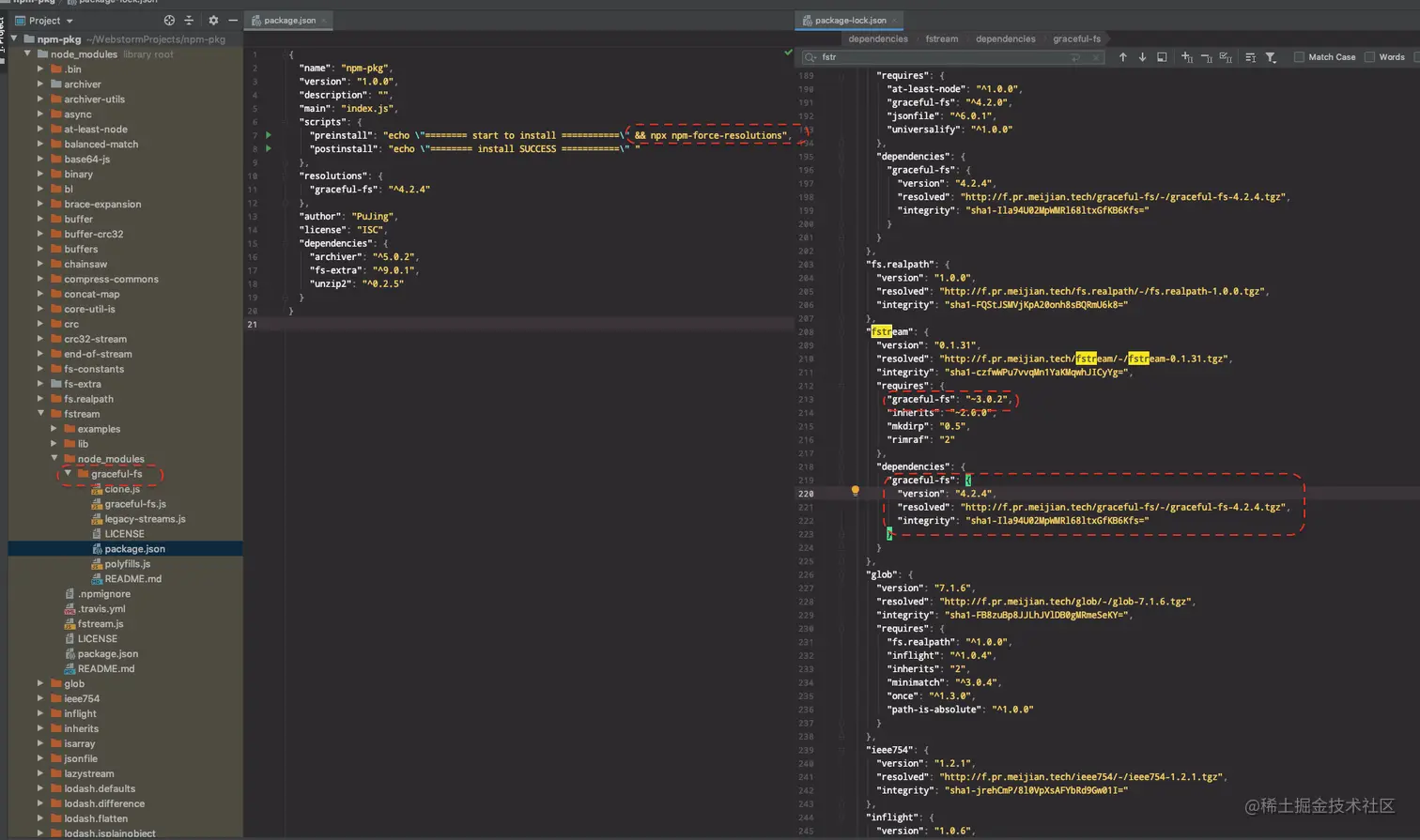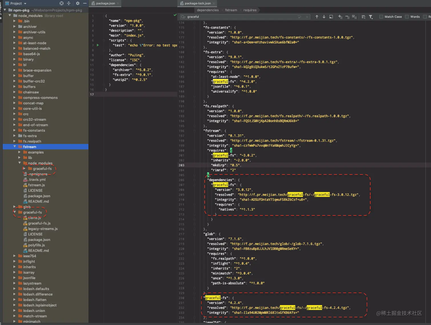 - 结局:产生了一个3.x和一个4.x的graceful-fs包