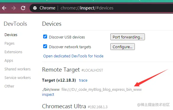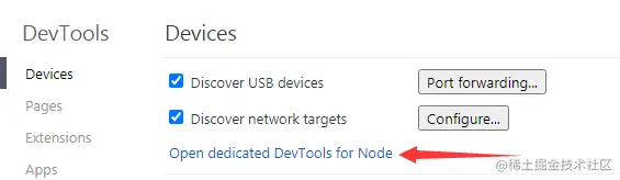 Remote Target- 解决: 点击Open dedicated DevTools for Node