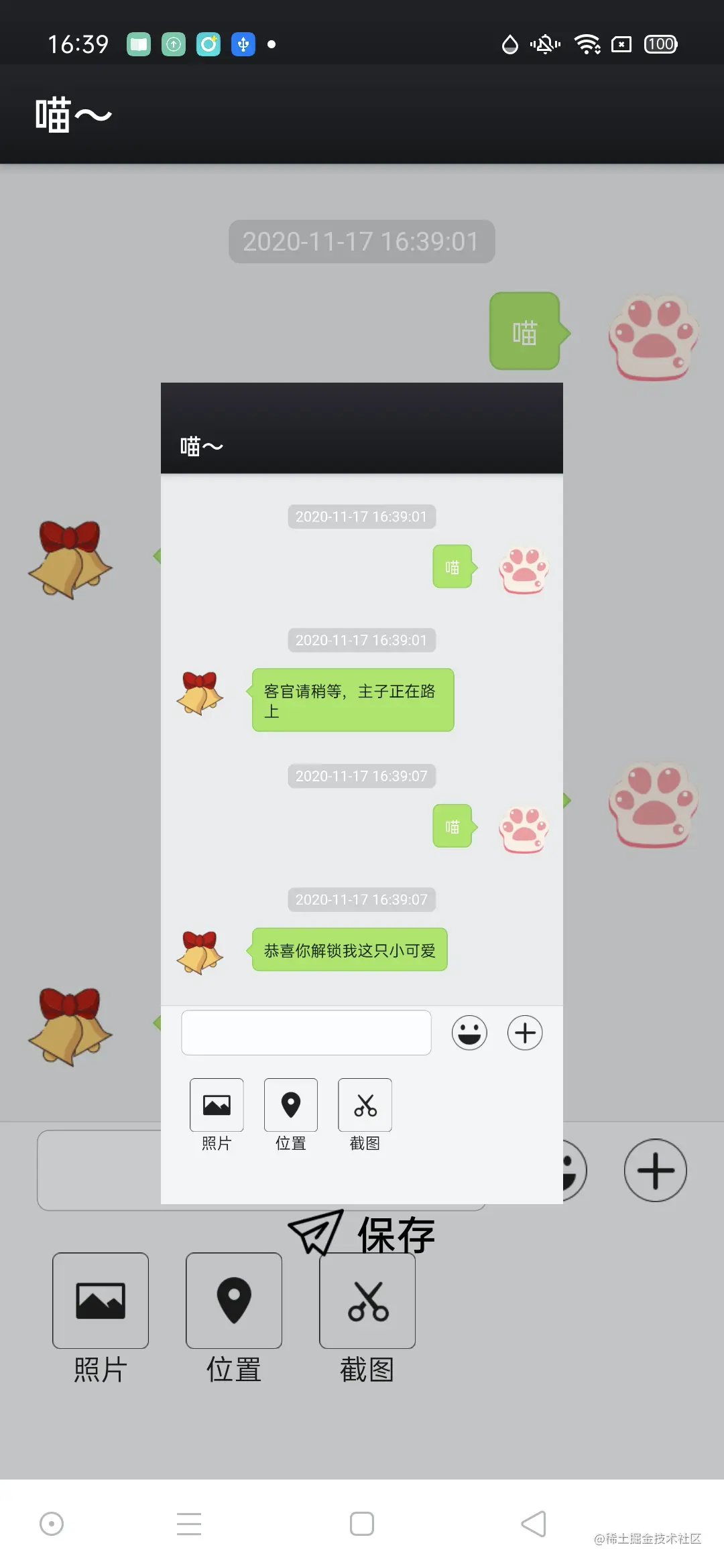 这次是仿做微信的对话框,只实现了一部分功能如下: