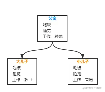 共性抽取:父亲每天吃饭睡觉,生了两个儿子继承了父亲的这两点,也每天吃饭睡觉。