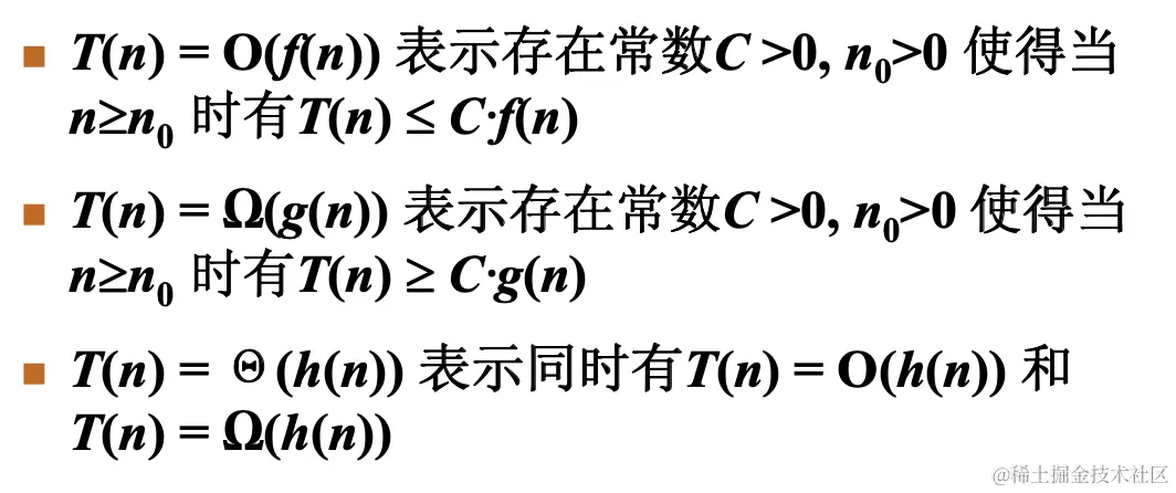 - O(f(n))表示f(n)是T(n)的上界——一般取得是能找到的最小的上界