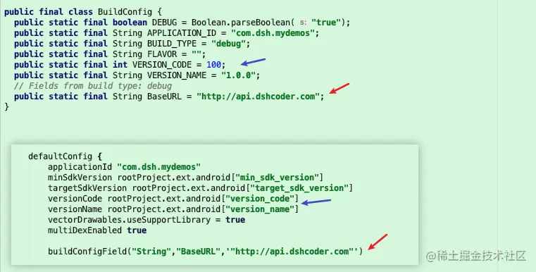 在我们的开发中,经常需要配置一些信息,比如baseUrl,混淆开关等,最终这些配置信息经过编译后会体现在BuildConfig中,方便我们的使用,如下图示