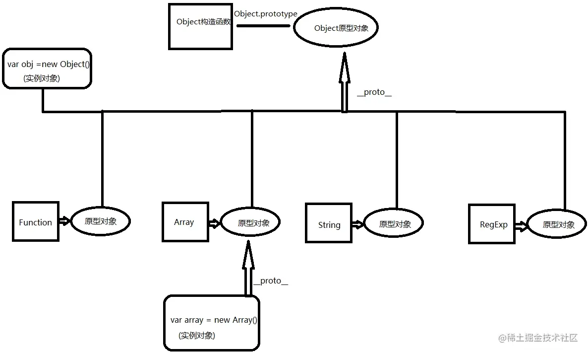 上图中矩形是构造函数,椭圆是原型对象,带圆角的矩形是实例对象.