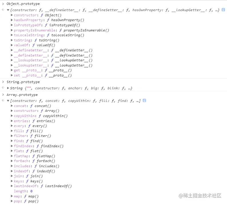 Object,Function,Array,String,RegExp都是构造函数,通过.prototype的方式可以访问上图右侧的原型对象.