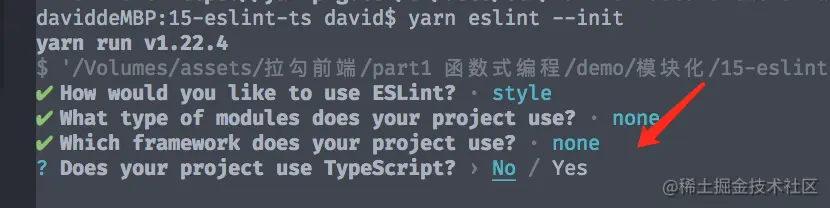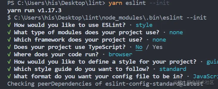 yarn eslint --init, 初始化时, - 控制台会提示让我们选择很多选项,