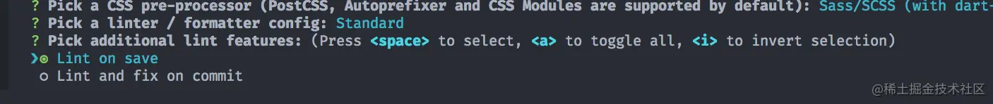 Which style guide do you want to follow这里我选择了standard这个选项可以不用强制在代码后加上; - 初始化完成后 会在根目录下生成