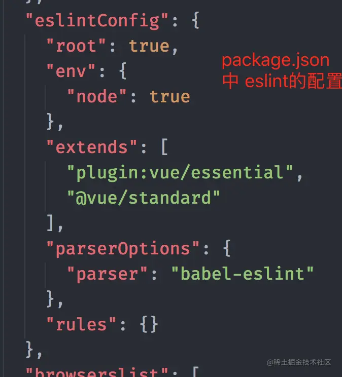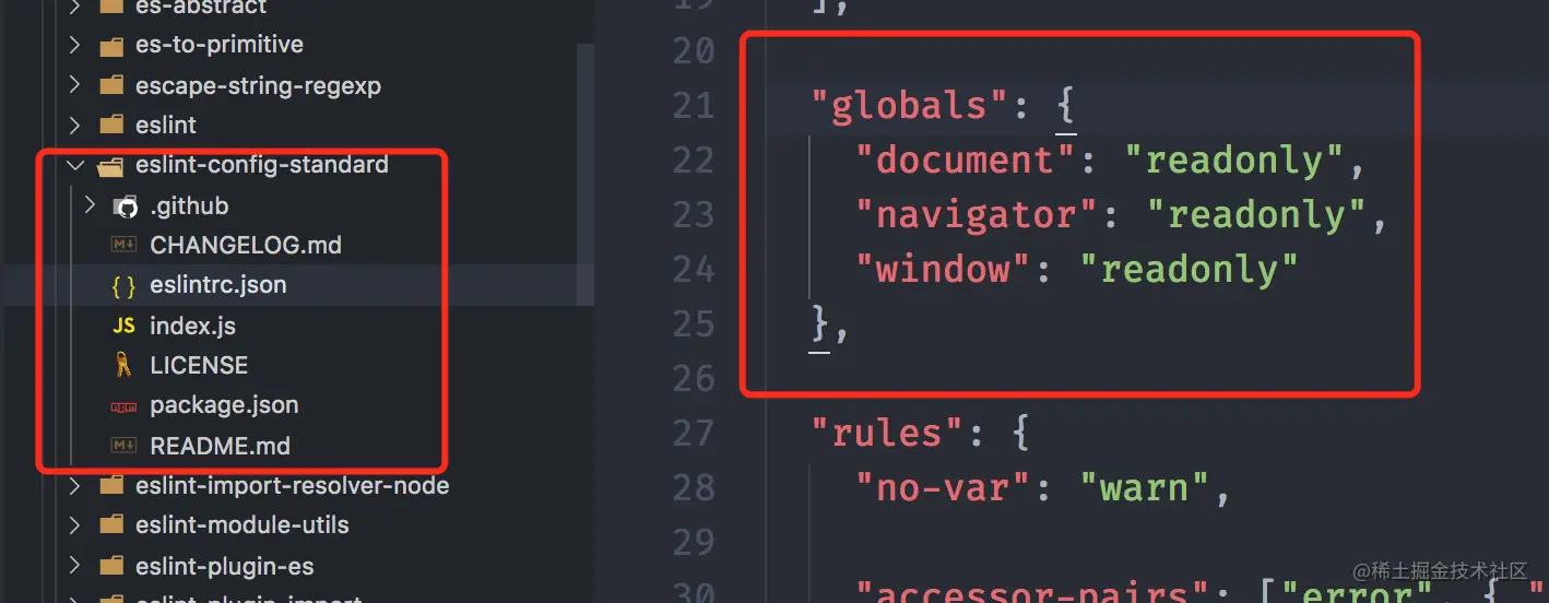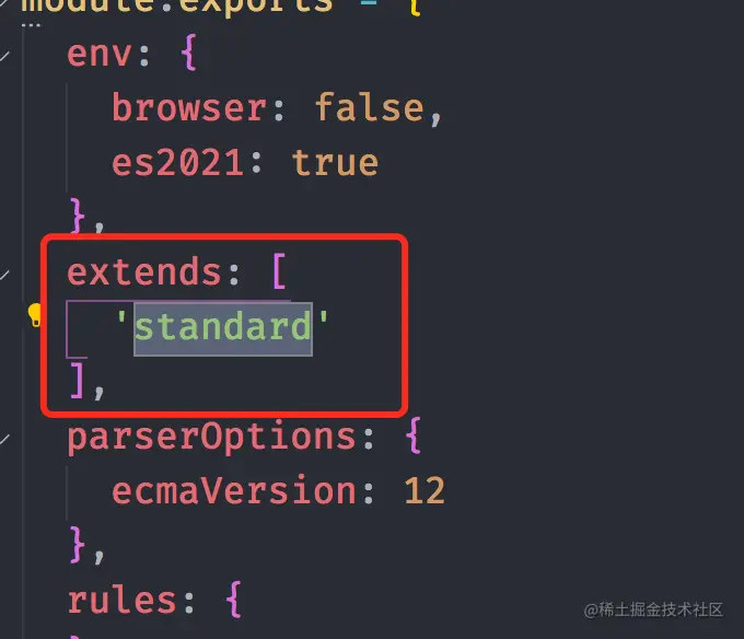 extends 属性中添加了standard, standard配置是一个常见的共享配置 eslint 配置,当我们配置它时,就会继承里面所有的配置选项,虽然我们将 browser 环境禁用了,当在 standard 中 将 document 、window 进行了全局配置 。