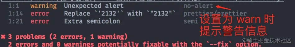 'no-alart' : 'off', //off: 关闭验证规则, error: 错误级别的提示, warning: 警告提示