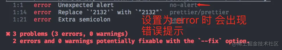 如下,使用alert 会触发no-alert规则,提示报错信息