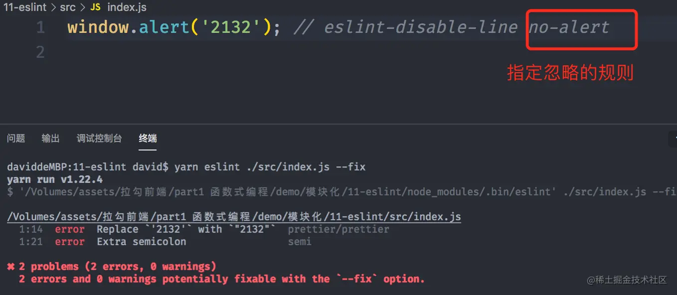 添加 eslint-disable-line 注释后 eslint 将会忽略这一行