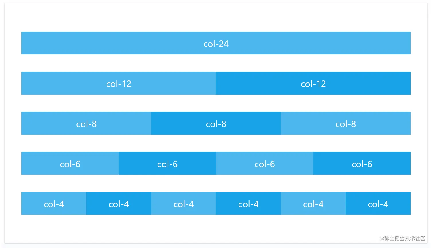 这个组件需求还是比较简单的,所以这里直接介绍组件的使用吧。采用了24栅格系统,这样可以轻松应对大部分布局问题。使用栅格系统进行网页布局,可以使页面排版美观、舒适。