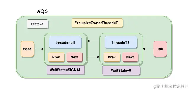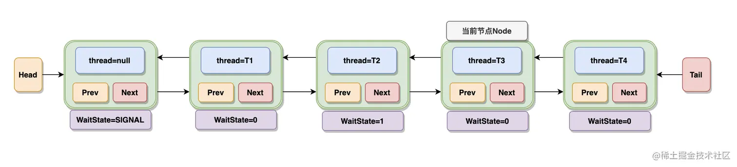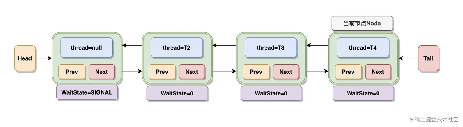 - Head 指向节点为已获得锁的节点,是一个虚拟节点,节点本身不持有具体线程