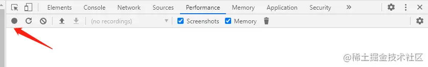 点击左上角的 Record 按钮开始记录,然后你模拟正常用户使用网页。测试完毕后,点击 Stop。