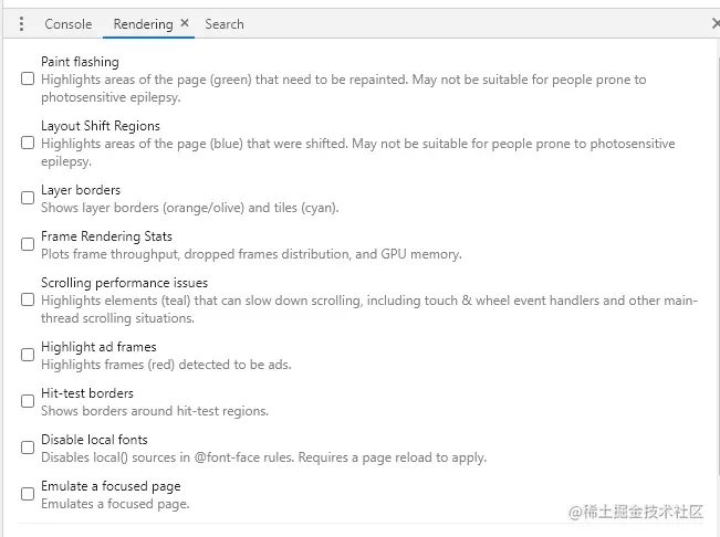 - Layout Shift Regions,实时高亮重排(重新布局)区域(蓝色)。