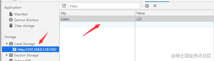 从图中看到,在 Application 标签下可以查到本页面很多信息。拿 localStorage 举例,现在我执行代码 localStorage.setItem('token', '123'),然后打开 Application: