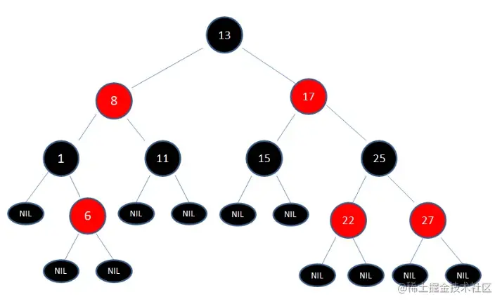 - 4、每个红色结点的两个子结点都是黑色。(从每个叶子到根的所有路径上不能有两个连续的红色结点)