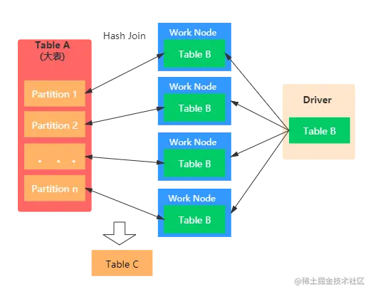 - Hash Join阶段:在每个 executor中执行Hash Join