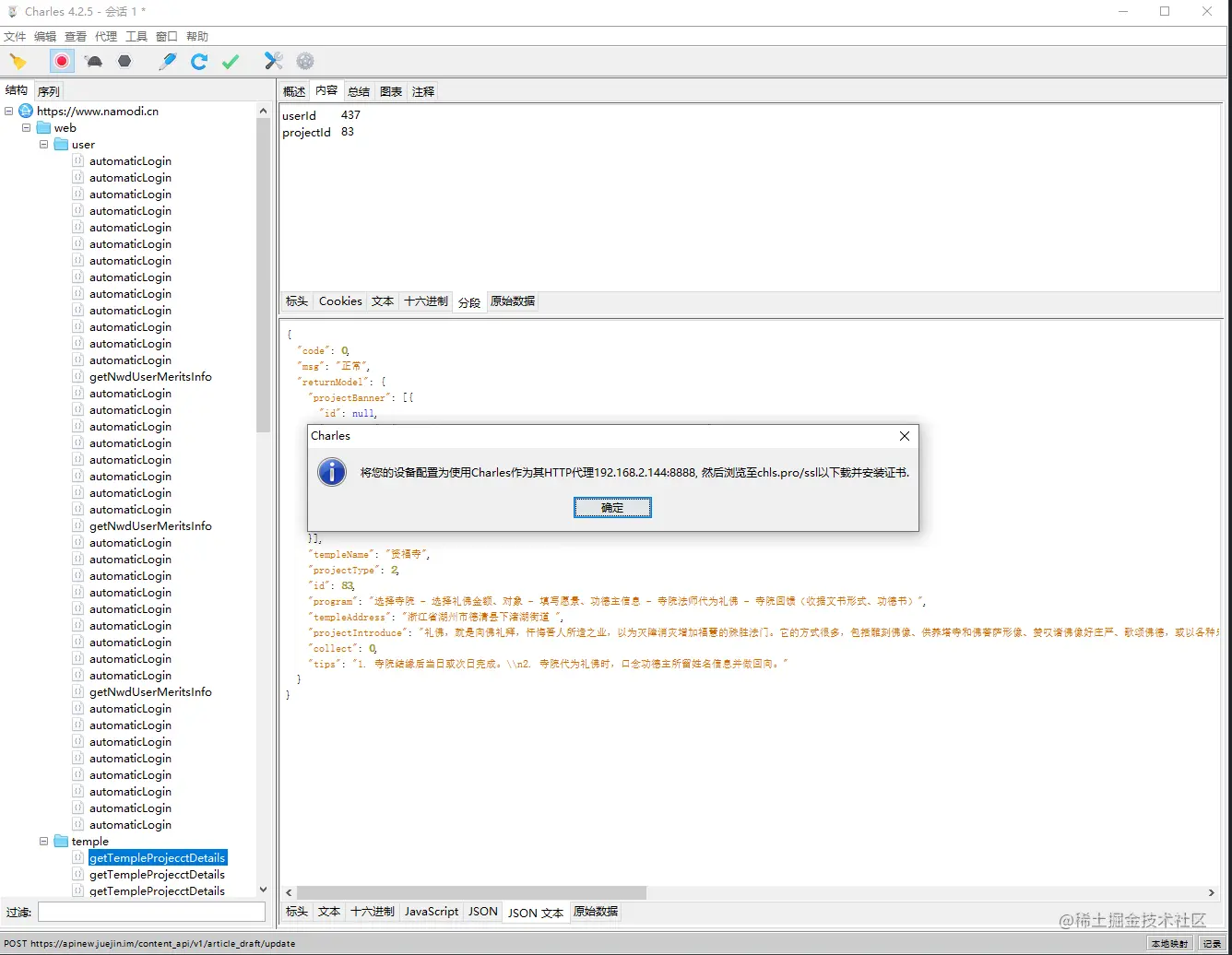 3. 点击确定即可完成,这时候接口请求的是线上数据,但是静态资源却是本地的。