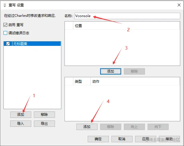 2. 添加一条规则(添加规则 -> 输入规则名称 -> 添加需要替换的地址 -> 添加重写的规则(替换的地方))