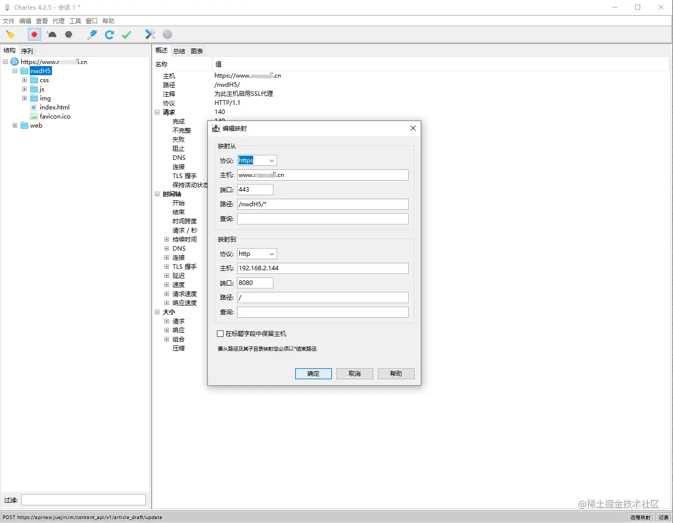2. 输入"映射到"的地址,比如我的本地项目是http://192.168.2.144:8080/