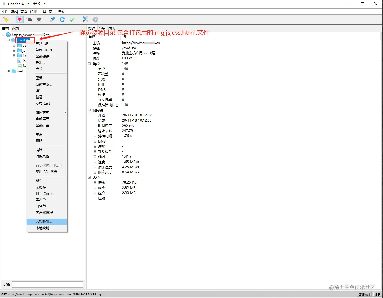 1. 右键选中静态资源的目录或文件,然后在弹出的菜单中选择"远程映射"