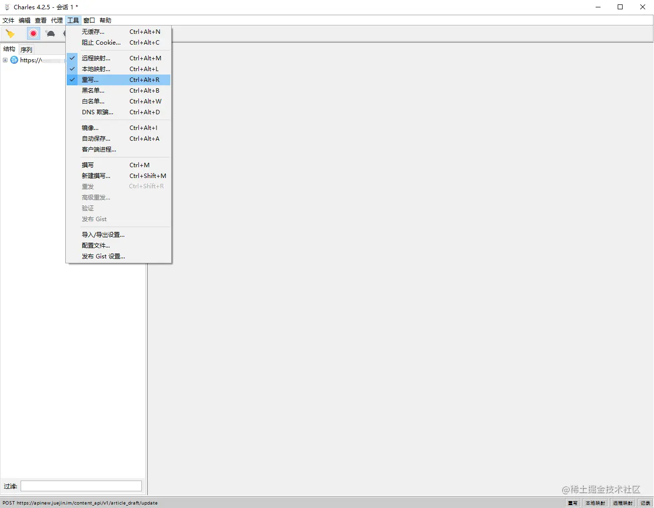 1. 点击菜单栏“工具” -> “重写”