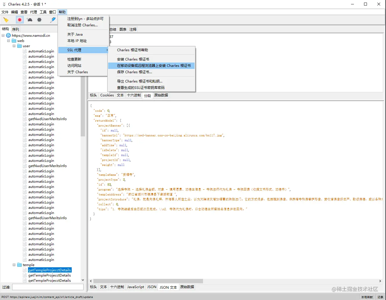 4.注意:如果弹出该网站证书不被信任或者页面通过接口请求的数据不正常,比如通过接口获得了一张图片,但是这张图片在页面上的渲染有问题,这时候说明没有安装证书,或者是证书不正确,请按照下列方法安装证书即可: