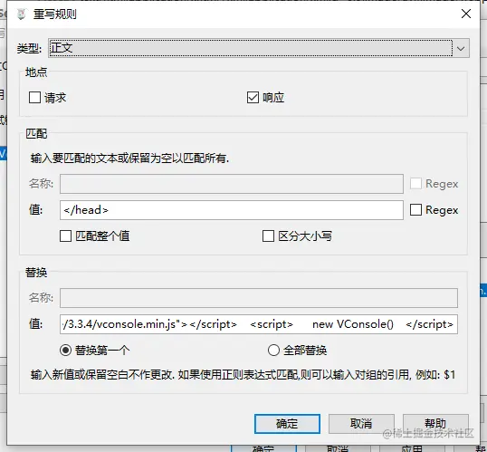 三、重写(可以编辑请求中的任何参数),我举一个调试生产环境代码的例子:在生产环境中添加vconsole,却不影响线上的代码