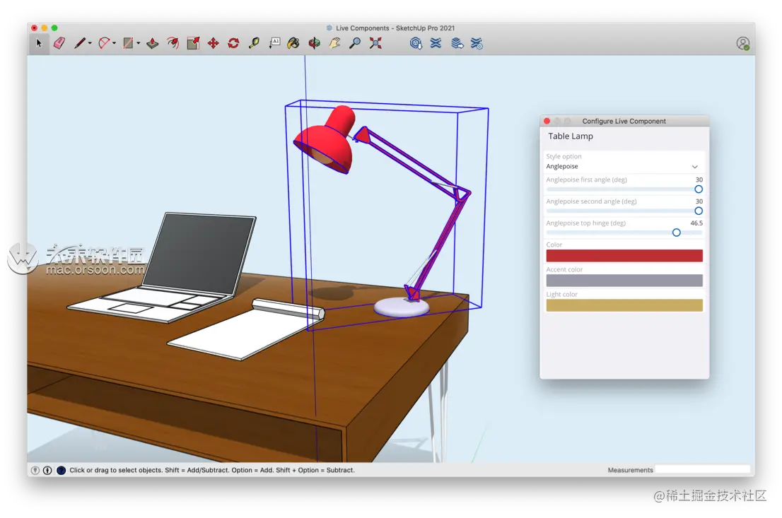 实时组件是一种新型的可参数配置对象,在此版本中,您可以在SketchUp中对其进行控制。