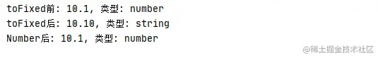 console.log('toFixed后: ' + res + ', 类型: ' + typeof res)