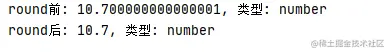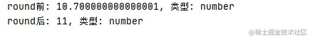 console.log('round后: ' + res + ', 类型: ' + typeof res)