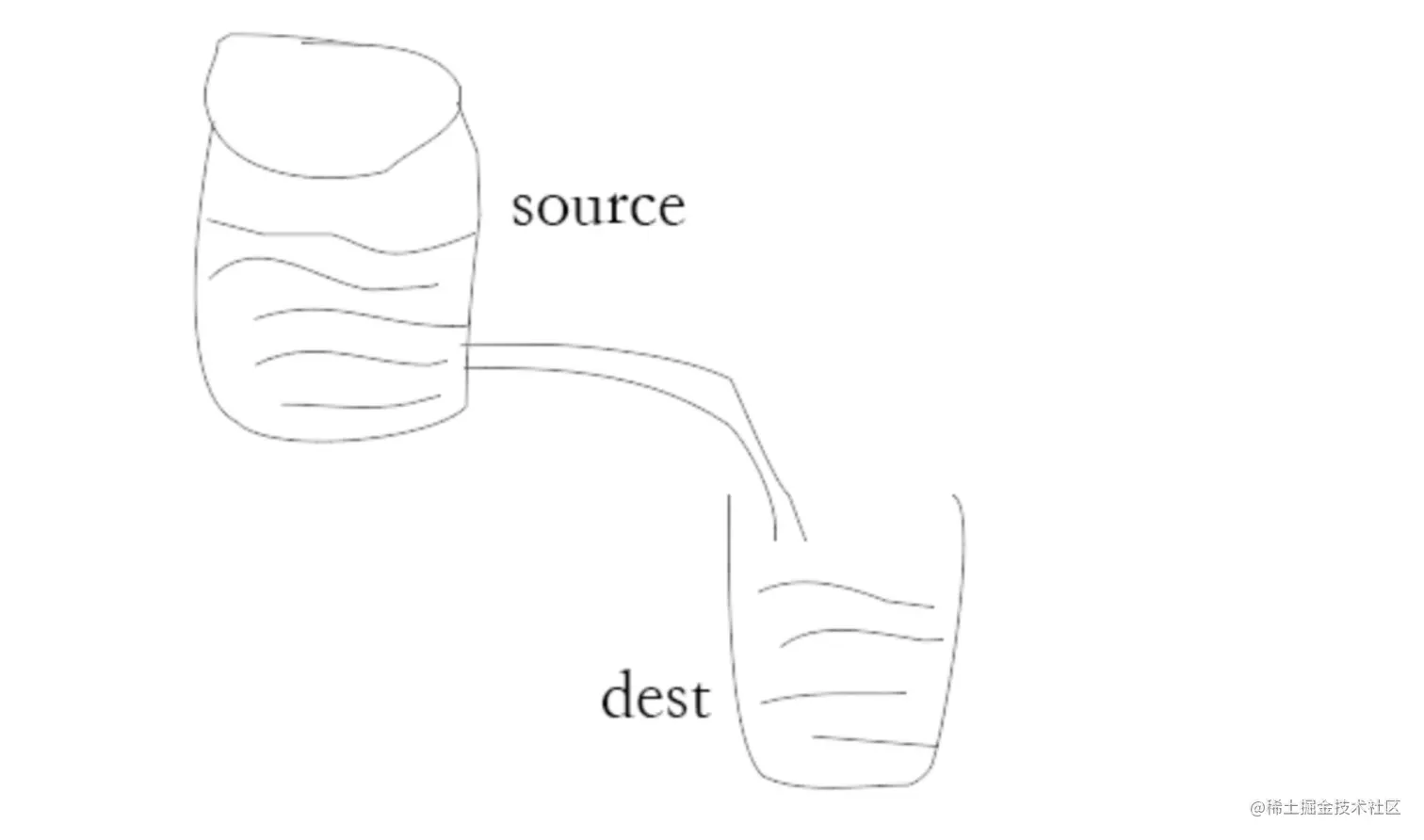 如上⾯的图⽚所示,我们把⽂件⽐作装⽔的桶,⽽⽔就是⽂件⾥的内容,我们⽤⼀根管⼦(pipe)连接两个桶使得⽔从⼀个桶流⼊另⼀个桶,这样就慢慢的实现了⼤⽂件的复制过程。以下实例是通过读取⼀个⽂件内容并将内容写⼊到另外⼀个⽂件中。