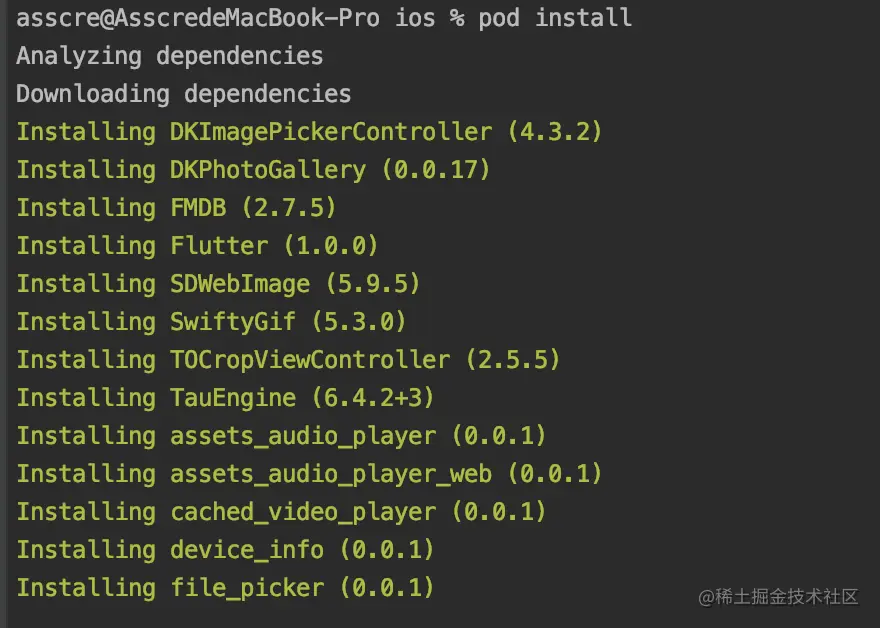 3、在ios文件夹在运行终端:pod install