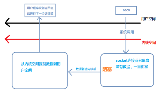 所以说,当一个recv操作发生时,它会经历两个阶段: