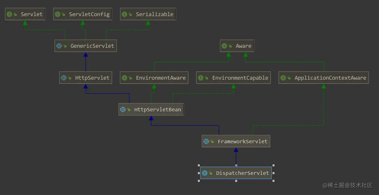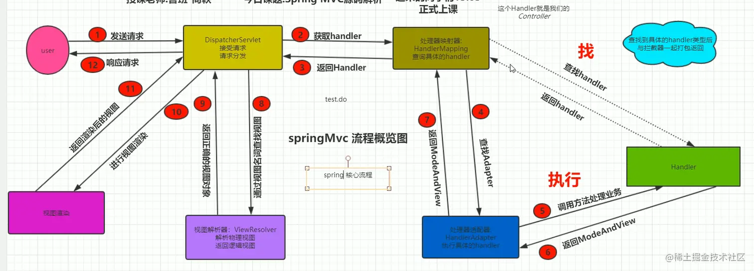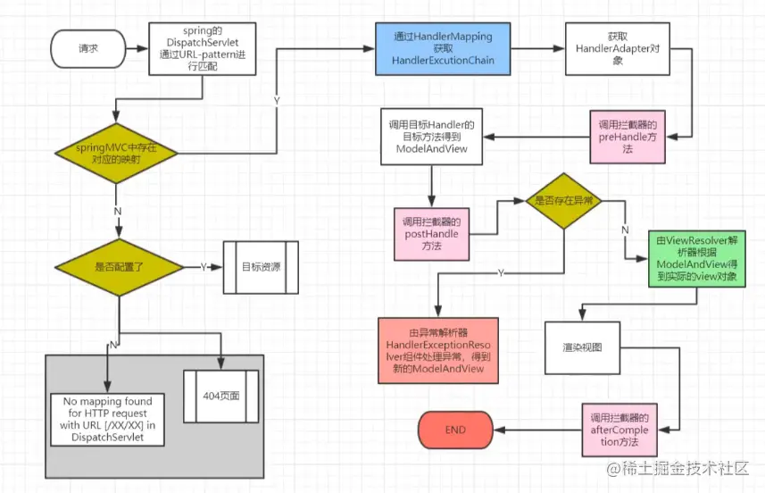 请求-->DispatcherServlet-->handlerExecutionChain-->getHandlerAdapter--->handle-->processDispatchResult