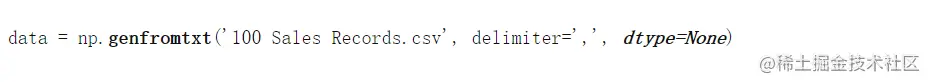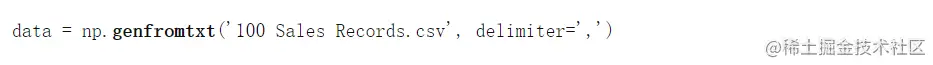 这里,我们简单地使用了在传入的定界符中 作为 ','的 loadtxt 函数 , 因为这是一个CSV文件。