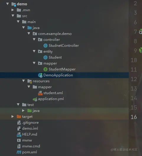 3:创建一个SpringBoot项目,编写配置文件,整体结构图如下,还是很简单的