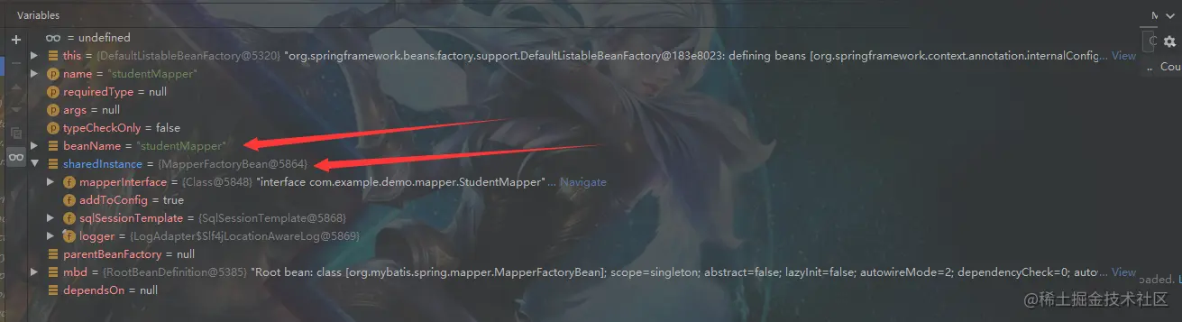 14:生成代理类是在实例化Bean的时候,也就是在AbstractBeanFactory的doGetBean()方法中,这是实例化Bean的方法,可以看到我们其实是想实例化StudentMapper这个Bean的,但是实例化之后确实MapperFactoryBean这个对象,至于为什么可以看第12步