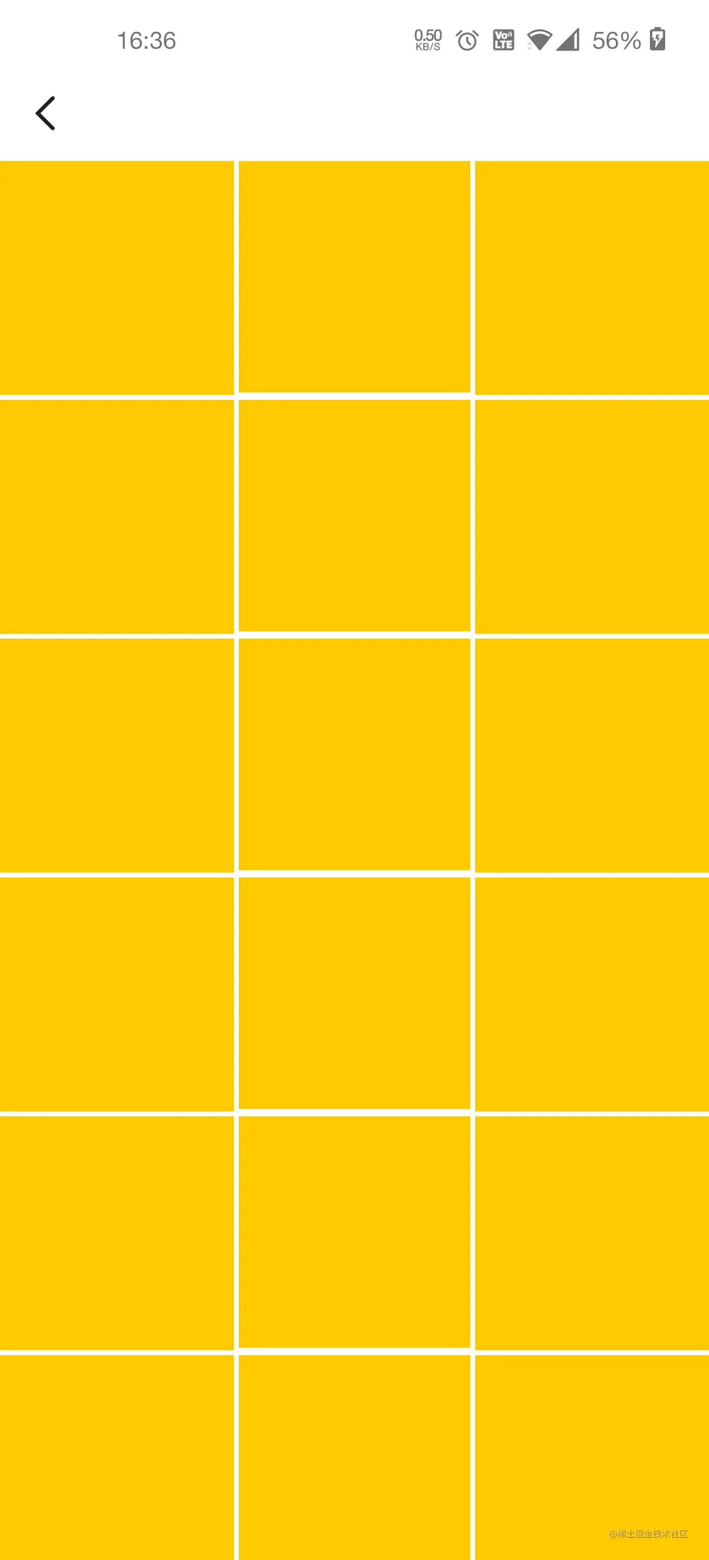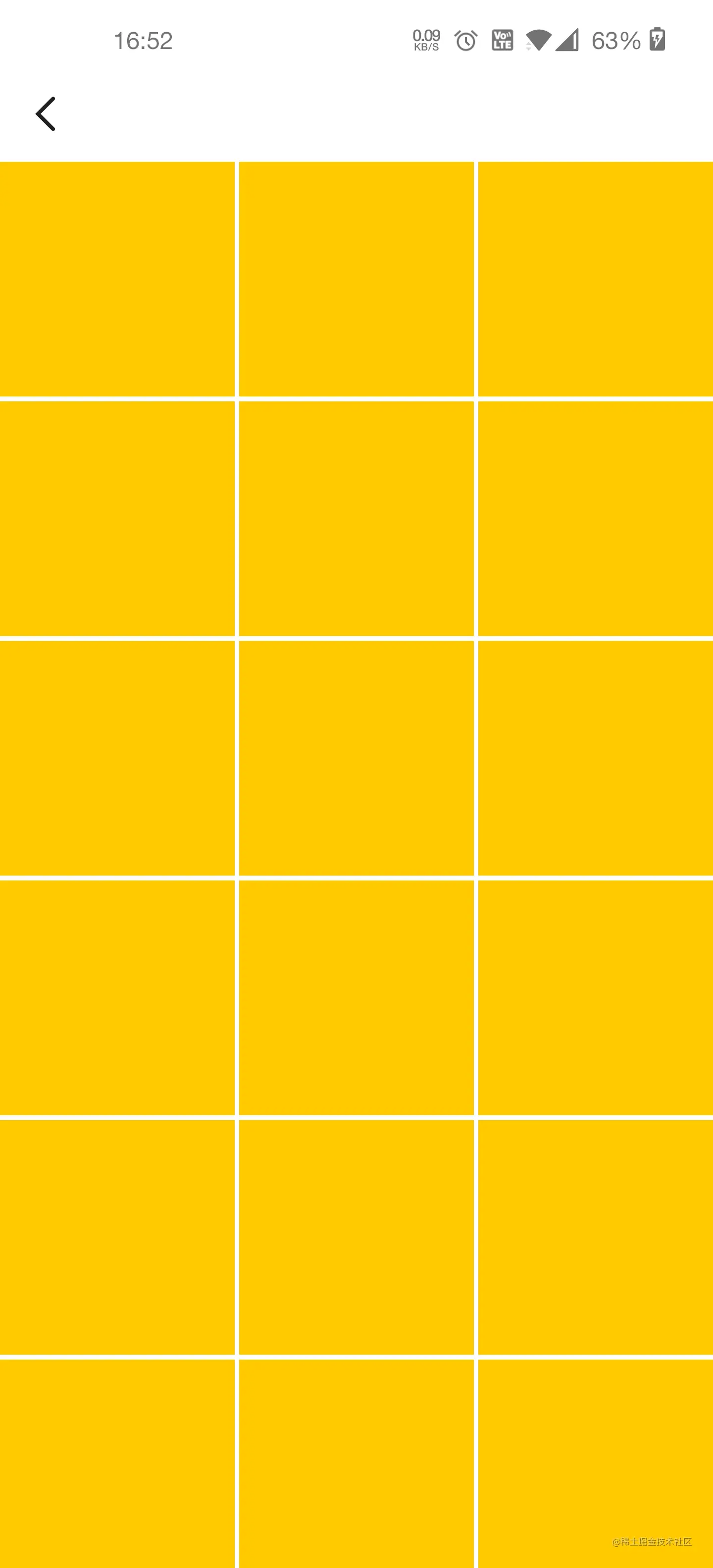 怎么解决呢?也很简单,在这个例子中,对于每一行来说,只有两部分间距,即第一列的Item和第二列的Item间有一个间距,第二列Item跟第三列Item之间也有一个间距。而左右两侧距离屏幕距离是0,所以得出这一行中除了可显示内容View之外,剩下的需要留白的宽度是10+10=20。然后,因为一行是三列,所以对于每一个Item来说,他所分得的空白宽度,就是20/3。那么对第一列Item来说,他的左侧距离是0(靠左侧屏幕),那么右侧距离就是 20/3-0=20/3。第二列,他的左侧距离是多少呢?想一下,他的左侧距离再加上第一列Item的右侧距离,刚好就是10,既然已经知道了第一列Item的右侧间距,那么第二列Item的左侧距离就是10-20/3=10/3,那他这个Item当前还剩下的空白距离,就是20/3-10/3,也就是10/3。那第三列Item的左侧边距,同理可得为10-10/3=20/3,右侧距离为20/3-20/3,刚好是0,代码如下: