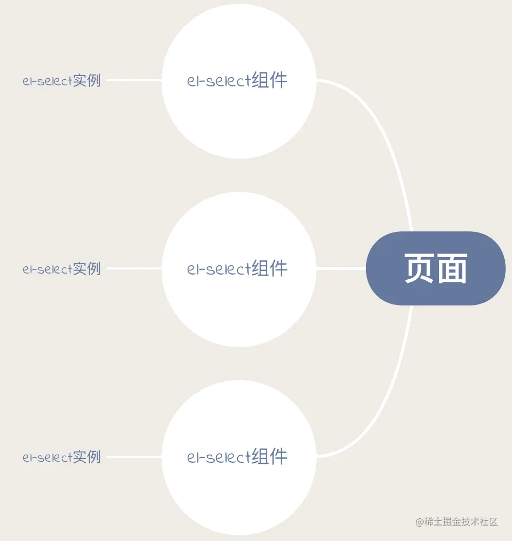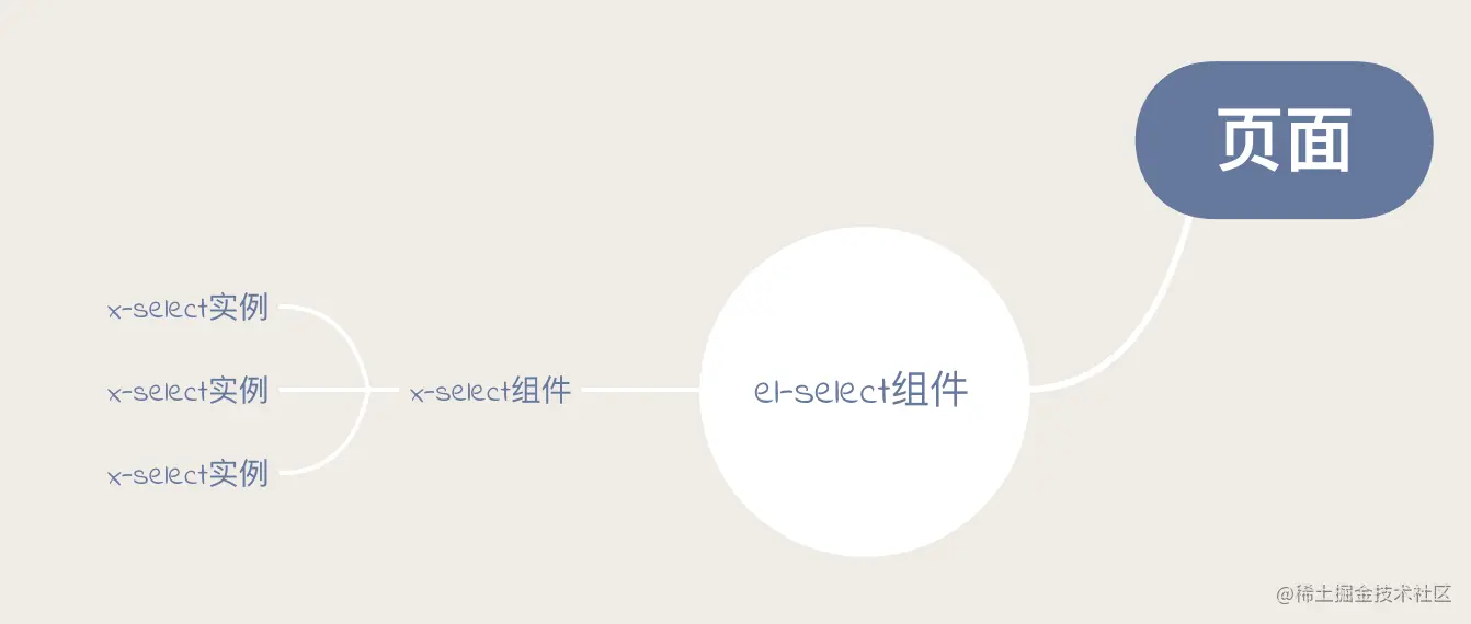 这一张图中,我们可以看见 el-select组件之前新加了一个 x-select 组件(也就是我们新定义的组件),这个组件中,因为是我们自己定义的,所以我们可以对它进行任意的修改。将来即使组件有什么改动,我们可以直接在 x-select 一处进行修改,前面所有的组件进行全部改动。