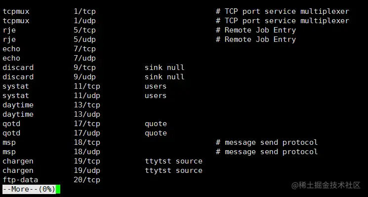 例子:查看etc目录下的 services 文件信息:more /etc/services