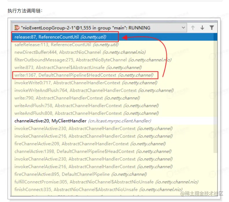 成后,最后消息会来到出站的最后⼀棒 HeadHandler,再经过⼀轮复杂的调⽤,