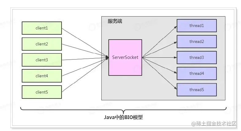 b 当连接创建后,该线程没有操作,会进行堵塞,不会释放线程。极大浪费服务器资源。