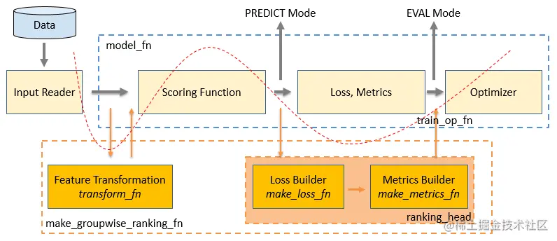 如前所述,TFR 框架通过 make_groupwise_ranking_fn 来对 Estimator 的 model_fn 进行了整体的封装。
