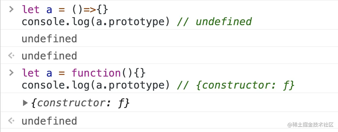 ~ 结论:箭头函数没有prototype(原型),所以箭头函数本身没有this