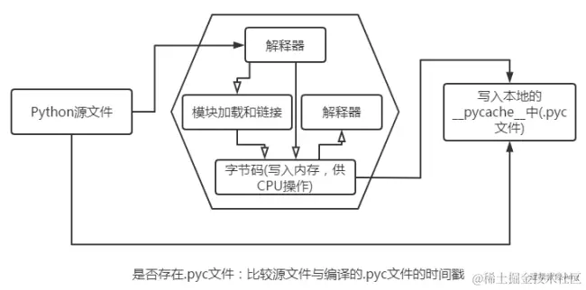 我们编写的代码一般都会保存在以.py为后缀的文件中。在执行程序时,解释器逐行读取源代码并逐行解释运行。每执行一次,就重复一次这个过程,这其中耗费了大量的重复性的解释工作。为了减少这一重复性的解释工作,Python引入了pyc文件,pyc文件是将py文件的解释结果保存下来的文件,这样,下次再运行的时候就不用再解释了,直接使用pyc文件就可以了,这无疑大大提高了程序运行速度。