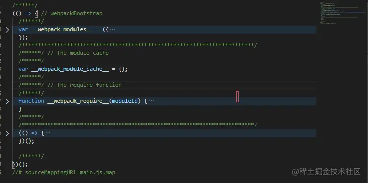 从上到下扫一遍后,可以发现其是一个匿名的自执行函数,函数内部定义了一个 webpack_modules 对象,一个闭包:webpack_require 函数,一个 webpack_module_cache 对象,看名字就知道这是一个缓存对象,下面又是一个匿名的自执行函数